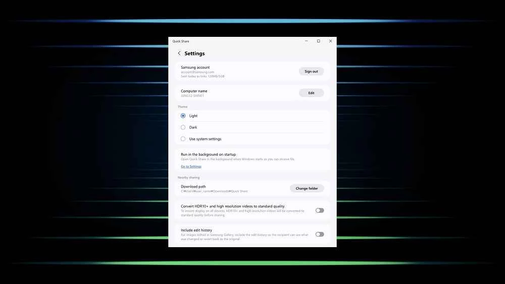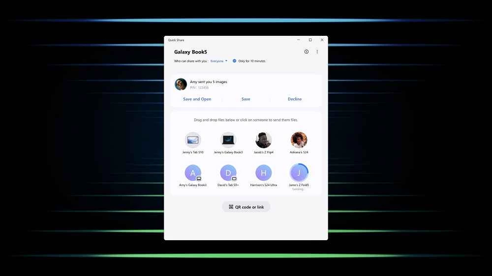 Quick Share, desarrollada por Samsung, ofrece la función de compartir archivos con un solo clic. Está diseñada específicamente para dispositivos Samsung Galaxy, pero también es compatible con ordenadores Windows que cumplan los requisitos del sistema. Es una utilidad sencilla, gratuita y ligera que agiliza el proceso de compartir archivos, tanto para uso profesional como personal.